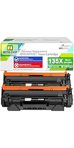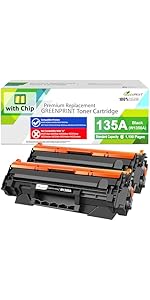 GREENPRINT WITH CHIP Compatible Toner Cartridge 135A W1350A Black 1100 Pages … | GREENPRINT WITH CHIP Compatible Toner Cartridge 135A W1350A 2 Blacks 1100 Pag… | [ WITH CHIP] Compatible Toner Cartridge 135X W1350X High Yield 2400 Pages for… | [WITH CHIP] Compatible Toner Cartridges 135X W1350X (135A W1350A) 2 Blacks 24… | GREENPRINT 135X W1350X [NO CHIP, with Special Tools] Compatible Toner Cartrid… | |