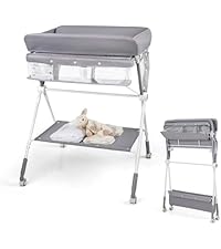 - ✔FOLDABLE & ADJUSTABLE DESIGN- Featuring a 3-level adjustable height (83/86/89 cm), this baby changing station is ideal for parents of different heights, alleviating back stress from bending over. When not in use, you can press the button on both sides to fold the changing table and use the hook to secure it.