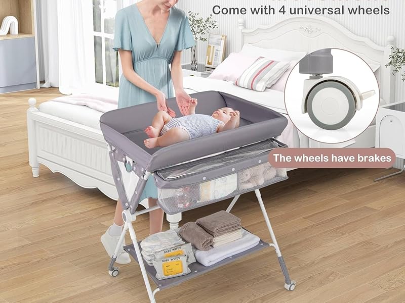 - ✔EFFORTLESS MOBILITY- The diaper changing station is designed with 4 universal wheels for easy movement. The lockable design ensures stability when in use, making it a safe and convenient option for your home nursery setup. Moreover, the wheels can be detached with ease. Suitable age: 0-12 months old; weight capacity: 11kg.