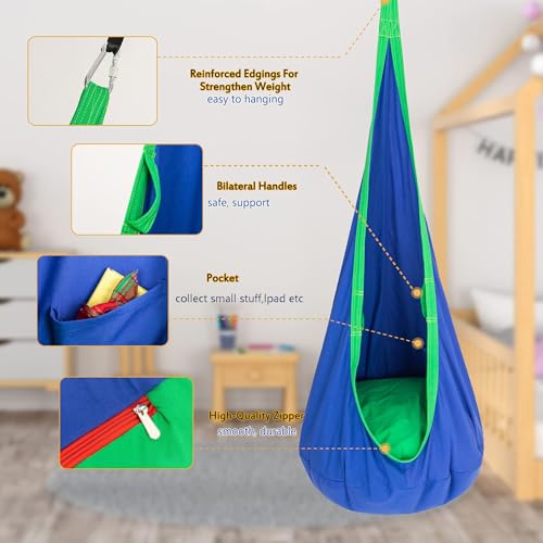 Indoor & Outdoor Versatility-Material: Cotton.Maximum load capacity: 80kg.Suitable for bedrooms, studies, balconies, backyards and tree installations, this pod swing chair works seamlessly in both indoor living spaces and outdoor garden areas, meeting diverse play and relaxation needs for kids.