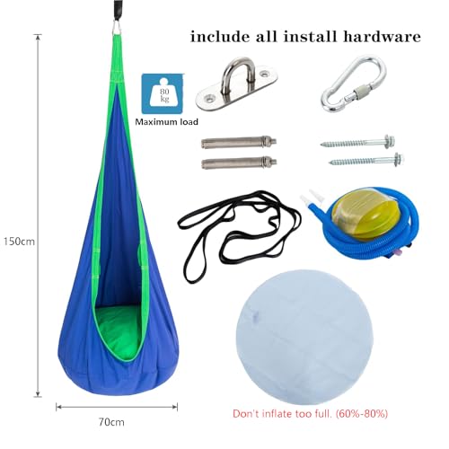 Easy Assembly with Complete Accessories-The package includes the pod swing, inflatable cushion, air pump and all necessary fittings, enabling quick and hassle-free installation with multiple hanging options to suit different spaces.