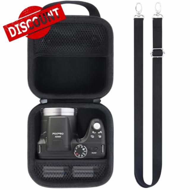 - Material: The exterior of the Lebakort compact zoom camera storage bag for the Kodak Pixpro AZ528 compact digital camera is made from a combination of camerasA and nylon. The EVA material has good shock and pressure resistance and effectively protects the Kodak digital bridge camera from external shocks and pressure. The nylon material, on the other hand, reinforces the abrasion resistance and durability of the bag, so that the storage bag can be used for a long time