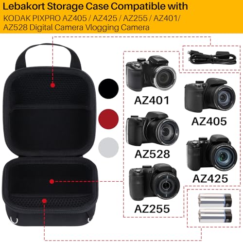 - Compatibility: Our Lebakort camera storage bag is specially designed for the Kodak Pixpro AZ528, Kodak Pixpro AZ255, Kodak Pixpro AZ425, Kodak Pixpro AZ401 and Kodak Pixpro AZ405 rechargeable digital camera. It can comfortably accommodate the Kodak Pixpro AZ528 digital bridge camera body while also providing sufficient and suitable space for batteries, memory cards and other related accessories, allowing all your photography equipment to be stored properly