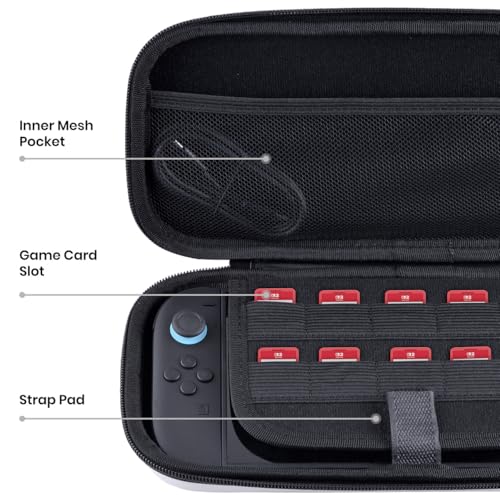 - Optimal Interior – The casing features a strap pad with game card slots to securely hold your Nintendo Switch 2 console, along with a mesh pocket to store additional accessories. A smooth microfiber inner lining provides extra protection against scratches.