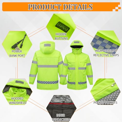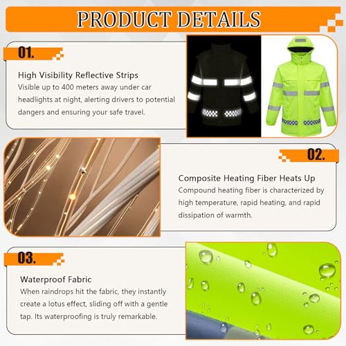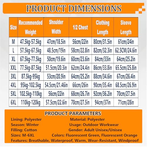 Heated Jackets for Men, Womens Heated Coat Hoodie for Winter, Hi Vis Bomber Safety JacketOrange,6XL