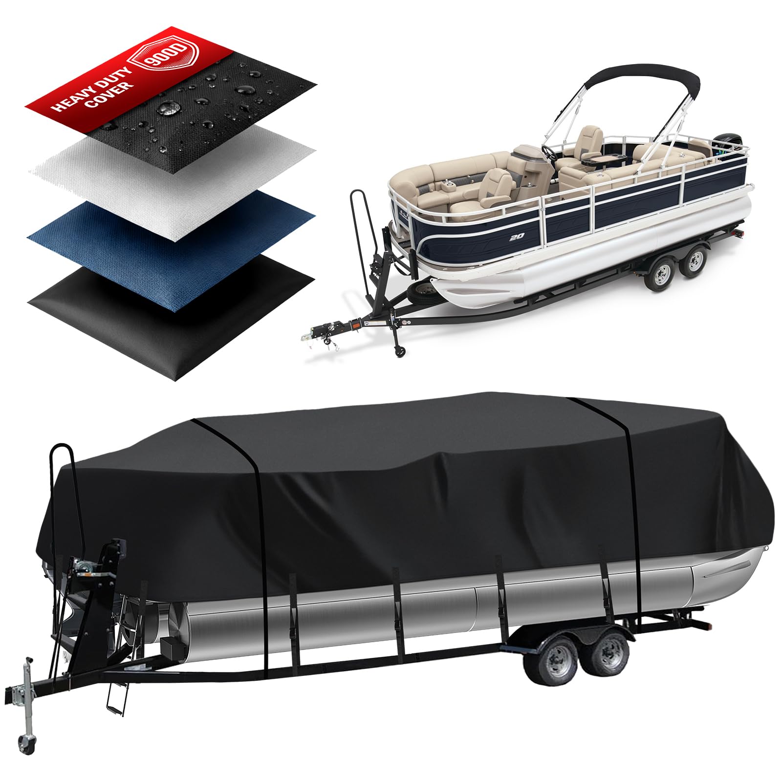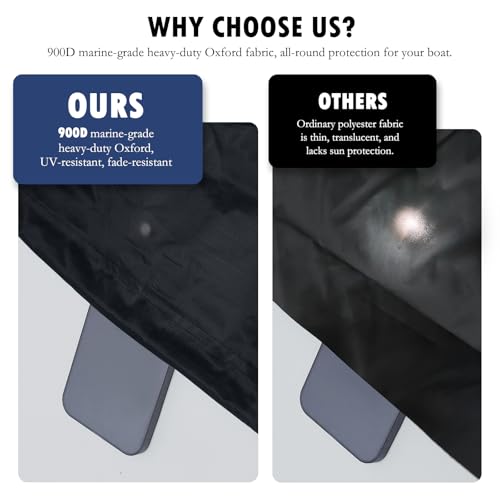 【Upgrade Materials】Crafted from robust 900D marine-grade polyester(more Sturdy than 800D/600D/420D/300D/210D fabric) and UV-resistant composites, our product is fade, tear, and puncture-resistant. Reinforced at vulnerable areas, it guarantees durability. Triple-folded, double-stitched seams ensure strength without rough edges