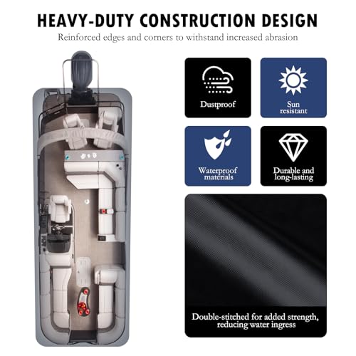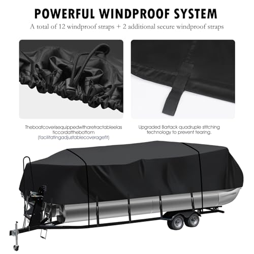 【Satisfactory Service】Package included 1 x Pontoon Boat Cover, 1 x Storage bag, 10 x 2M Adjustable strap, 2 x 6.5M Secure straps. If you have any questions about the waterproof boat cover, please feel free to contact us, we provide professional online service in pre-sales and after-sales service