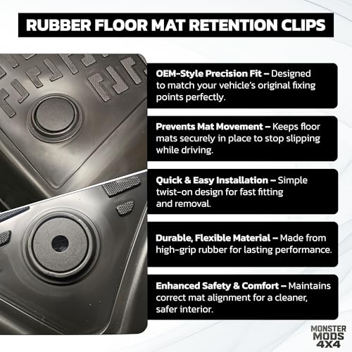 - SECURE OEM-STYLE FITTING: The driver-side mat features integrated OEM-design fixing holes that lock directly into your vehicle’s original fixing points, ensuring a perfect fit. This secure connection delivers dependable anti-slip performance, preventing the mat from shifting, lifting, or sliding while you drive.