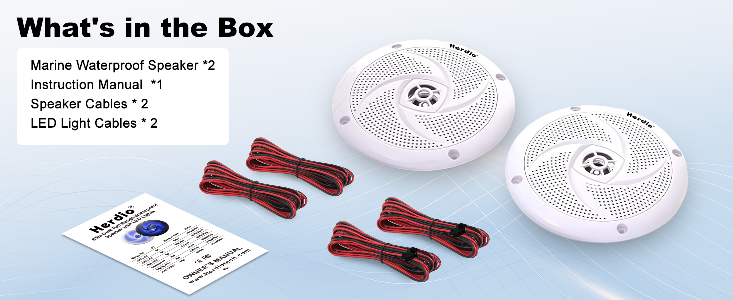 Herdio 5.25 Inch 160W Waterproof Marine Speakers – 2 Way Weather Resistant with LED Lights, and Low Profile Slim Style for Ooutdoor Boat,RV(White)