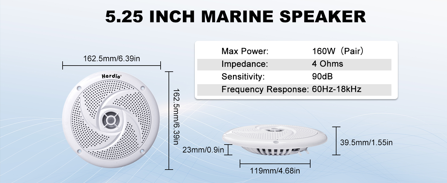 Herdio 5.25 Inch 160W Waterproof Marine Speakers – 2 Way