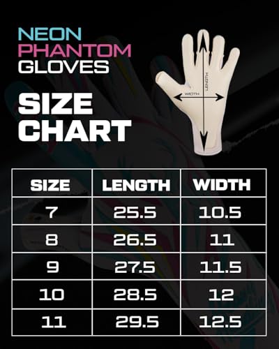 Take your goalkeeping performance to the next level with the HHH Neon Phantom Gloves. These gloves are designed for both competitive matches and intense training sessions, combining elite materials with advanced construction to deliver outstanding grip, comfort, and durability. The 4mm German latex provides exceptional ball control and superior stickiness. The Breathoprene body ensures your hands stay cool, flexible, and comfortable during long sessions. The Hyla Cut design offers a snug fit with an expanded catching area, giving you more control and confidence with every save. The all-weather silicone palm maintains consistent performance whether conditions are wet, dry, hot, or cold, making these gloves a reliable choice for year-round play. Each set includes two adjustable wrist straps, a goalkeeper glove keychain, and a protective glove bag to keep your gloves organized and in top condition. Available in sizes 7 through 11 with an accurate size chart for the perfect fit. The HHH Neon Phantom Gloves are built for goalkeepers who demand quality, performance, and durability.