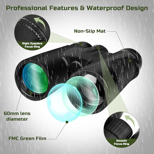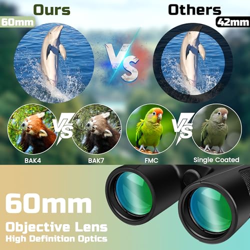 25X60 Binoculars for Adults + FMC Broadband Coating Technology + Clear View with Adjustable Focus Knob + Outdoor Bird Watching Binoculars + Waterproof and Fog-proof Binoculars