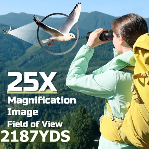 1.【25X60 Binoculars for Adults】 Experience crystal clear viewing with our 25X60 binoculars featuring a 60mm lens that captures every detail without any color distortion or blurring. With a magnification of 25X, this binocular offer an impressive viewing field of 2187 yards for an immersive experience.