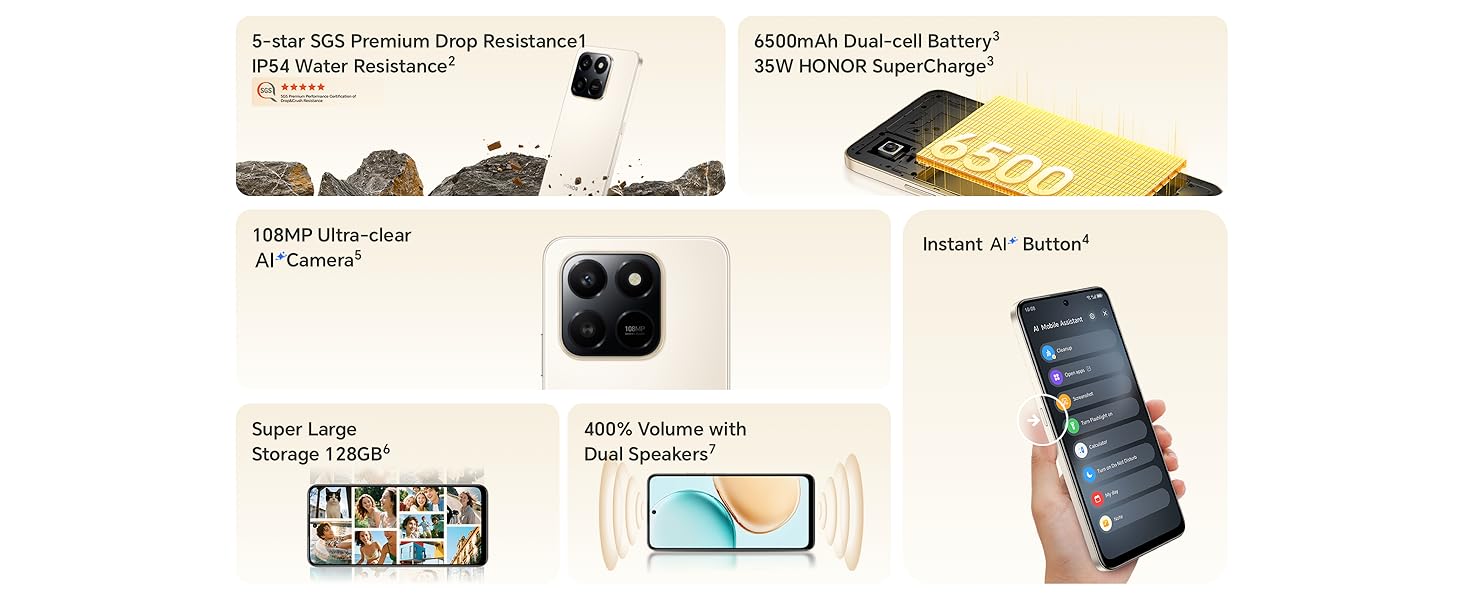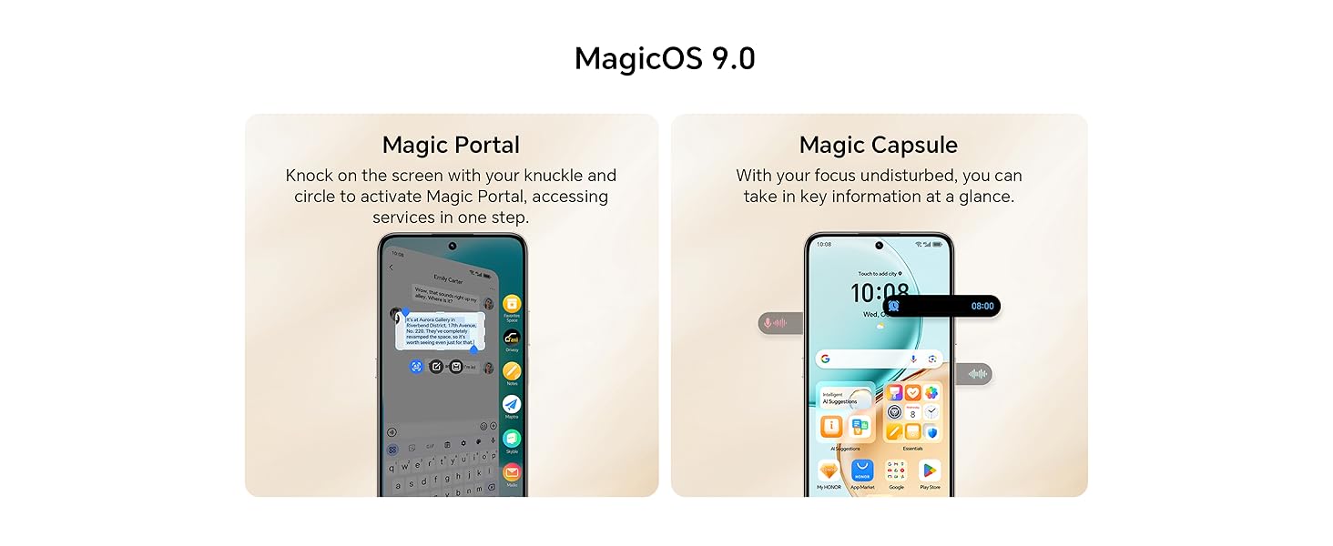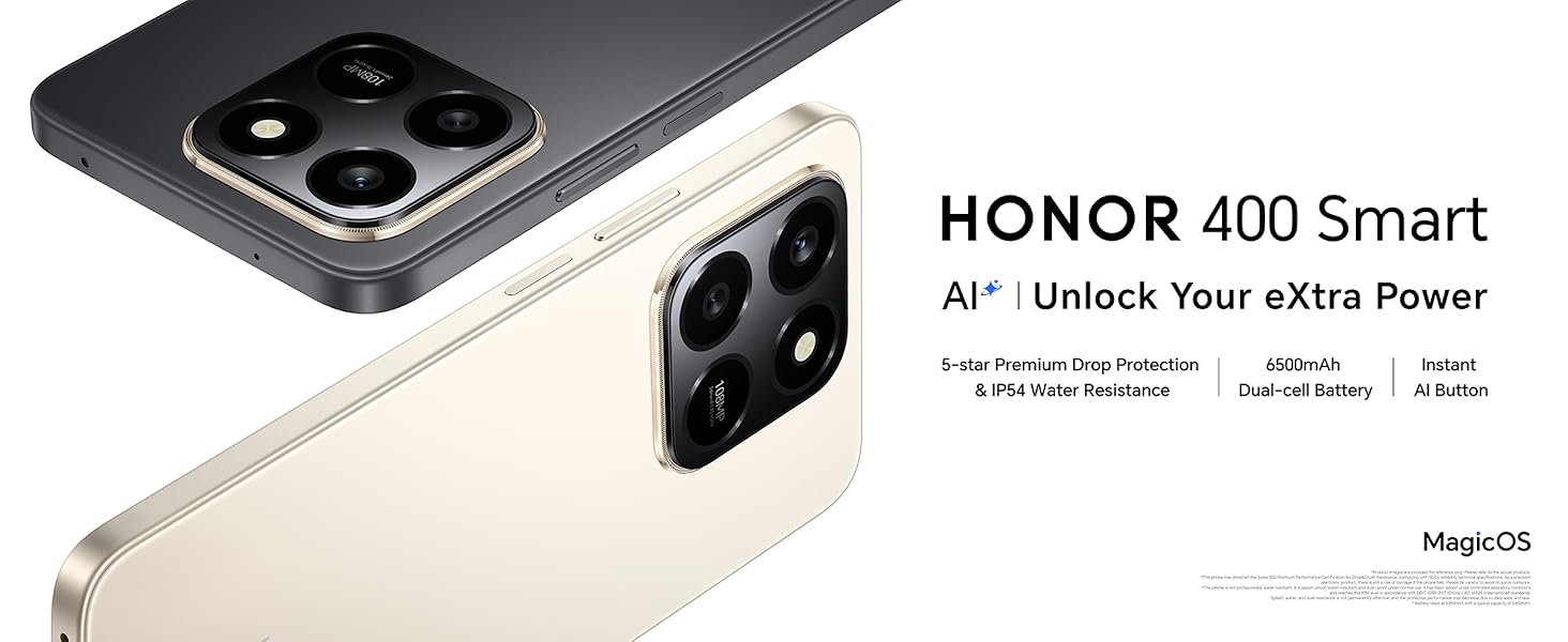 - 【Personalized Experience】Running the latest MagicOS 9 based on Android 15, with all Google apps and Play Store, HONOR 400 Smart brings you a smarter, smoother, safer, and more efficient system experience.