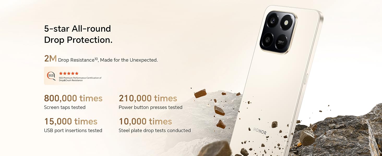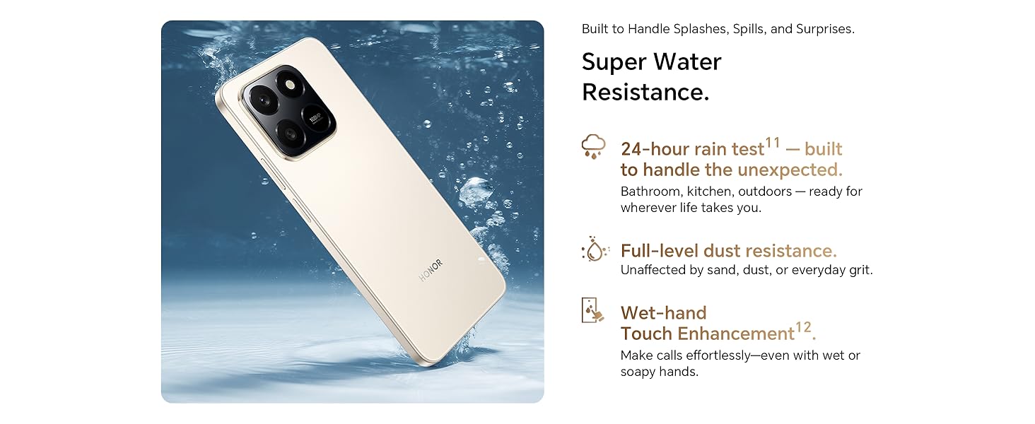 - 【Tough & Durable Build】- 5-star All-round Drop Protection.2M Drop Resistance, Made for the Unexpected.IP54-rated for dust and splash resistance.Full-level dust resistance.Unaffected by sand, dust, or everyday grit.Built to Handle Splashes, Spills, and Surprises.Make calls effortlessly—even with wet or soapy hands.