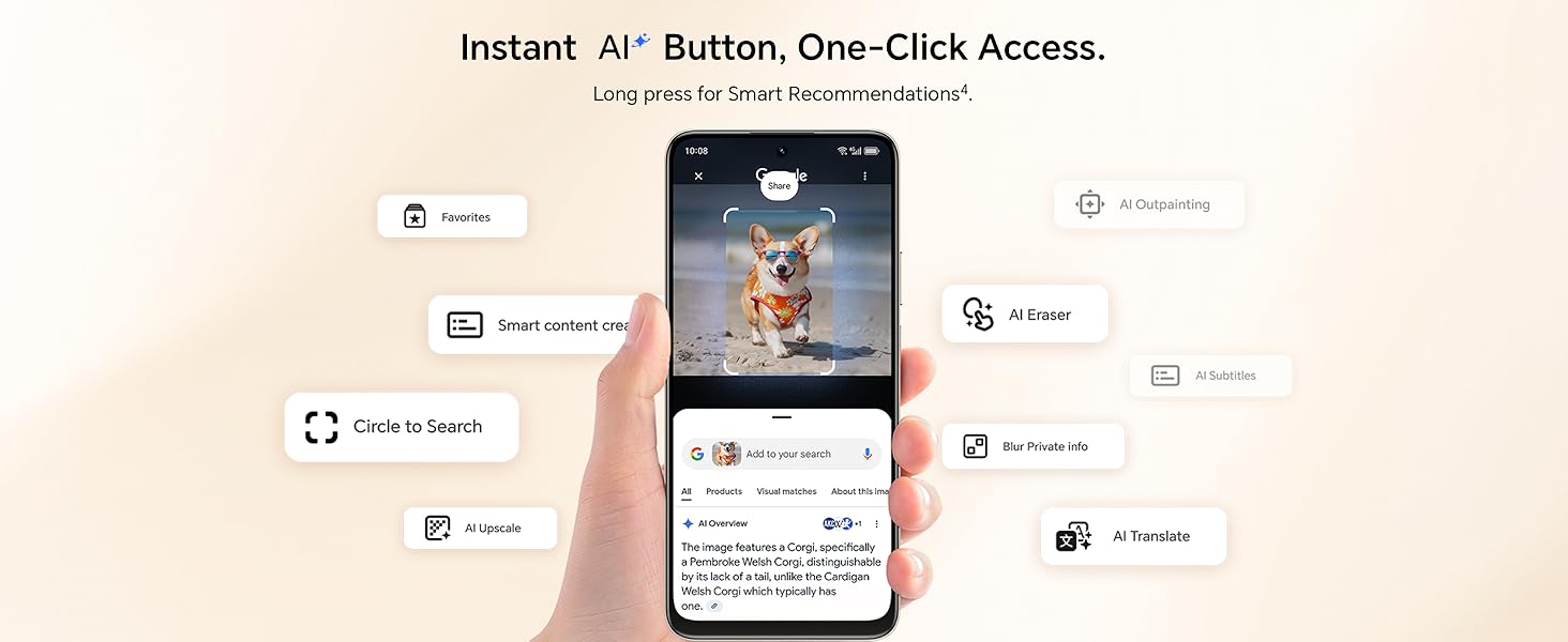 - [Instant AI Button, One-Click Access]:Smarter Features, Just A Click Away.A physical side button lets you quickly launch commands and frequently used apps with a single press.Long press the AI button to unlock smart visual features and get instant information.