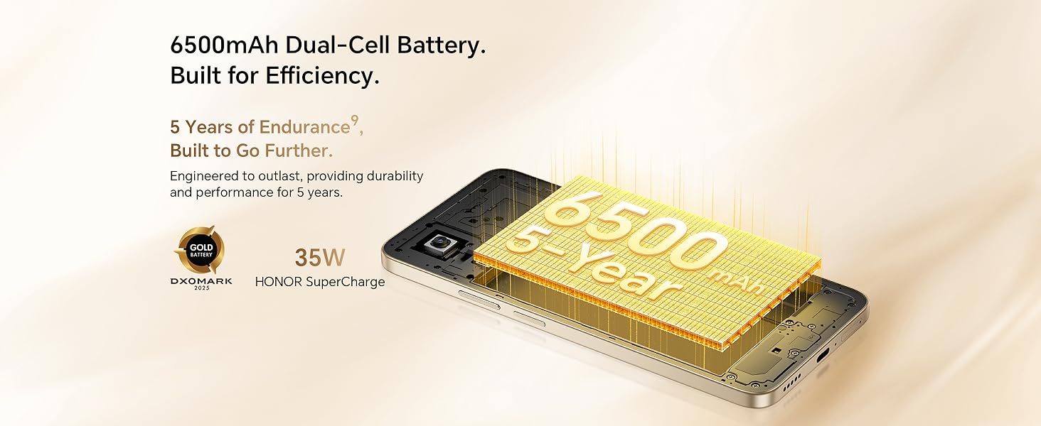 - [6350mAh Dual-Cell Battery] – Engineered to outlast, providing durability and performance for 5 years.Stay connected all day, and recharge quickly with 35W fast charging via USB-C.Double-cell battery with a stronger, safer design—lasting longer than standard single-cell batteries.The typical battery capacity is 6500mAh, and the rated battery capacity is 6350mAh.