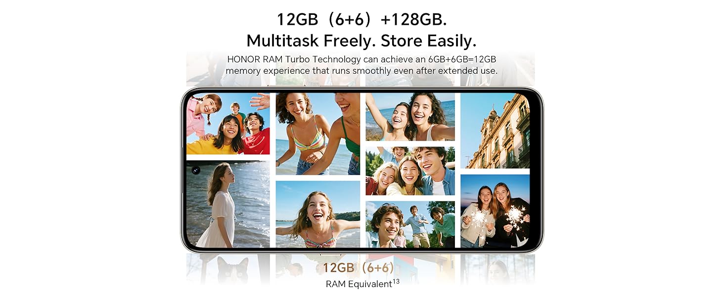 - 【(6+6)+128GB Large Memory】:Multitask Freely. Store Easily.HONOR RAM Turbo Technology can achieve an 6GB+6GB=12GB memory experience that runs smoothly even after extended use.