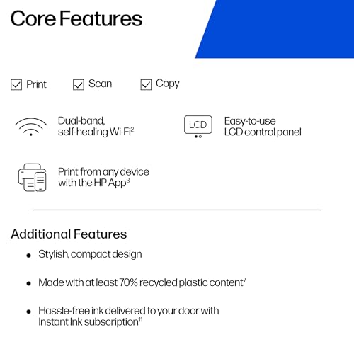 - EASY SETUP, WORRY- FREE CONNECTION: Handle your printing, scanning, and copying needs from anywhere in your home. Reliable connection with dual-band Wi-Fi that reconnects automatically. Print from anywhere with HP's easiest-to-use print app.