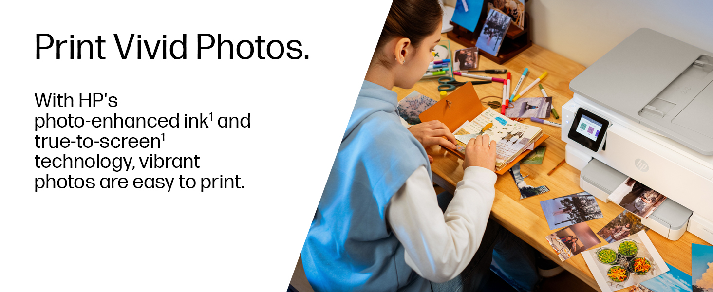 HIGH- QUALITY HOME PHOTO PRINTING: Print documents and borderless photos that look like they do on your screen with HP's true-to-screen tech. Customize the backs of photos for personalized cards with HP's exclusive automatic 2-sided photo printing. Turn memories into stunning, high-quality prints with photo-enhanced ink for richer, more vibrant colors.
