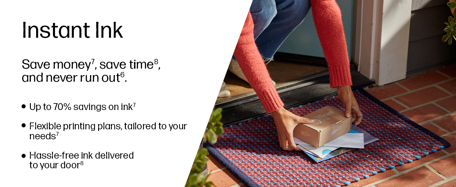 SAVE UP TO 70% ON INSTANT INK: 6 months of FREE* Instant Ink. Print documents or photos & save up to 70% with Instant Ink, the hassle-free, money-saving ink replacement service that automatically delivers ink only when you're running low. Cancel or change your plan anytime!