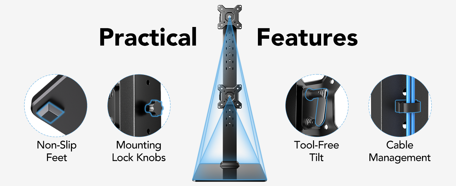 - 15-Minute Easy Installation: With a manual in box and clearly labeled hardware, our monitor stand is quick and simple to install. It also comes with cable clips to neatly route wires along the back of the pole for a clean look.
