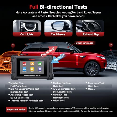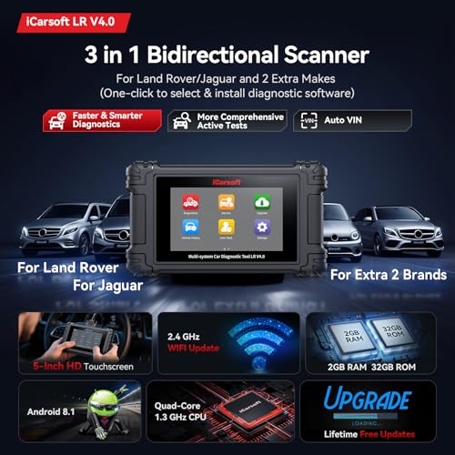 iCarsoft LR V4.0 Bidirectional Diagnostic Tool for Land Rover/Jaguar + 2 Optional Brand Packs, Full System OBD2 Scanner with 37+ Services for LandRover, Active Test, Auto VIN, Lifetime Update