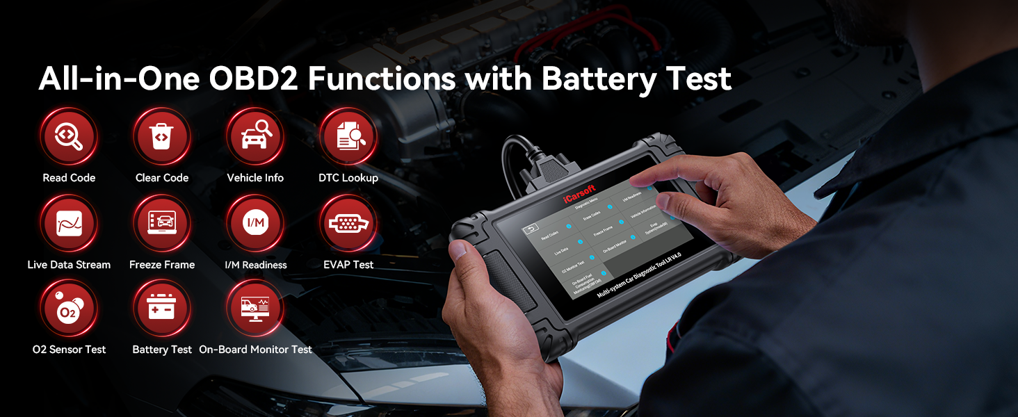【Complete OBDII and Battery Data Support】As a full-featured OBD2 scanner, LR V4.0 supports all 10 OBDII modes including I/M Readiness, Smog Check, Freeze Frame, O2 Sensor Test, and EVAP System Test. It also delivers real-time battery voltage tracking and diagnostic data, helping you monitor electrical health and charging performance through clear, graph-supported readings.