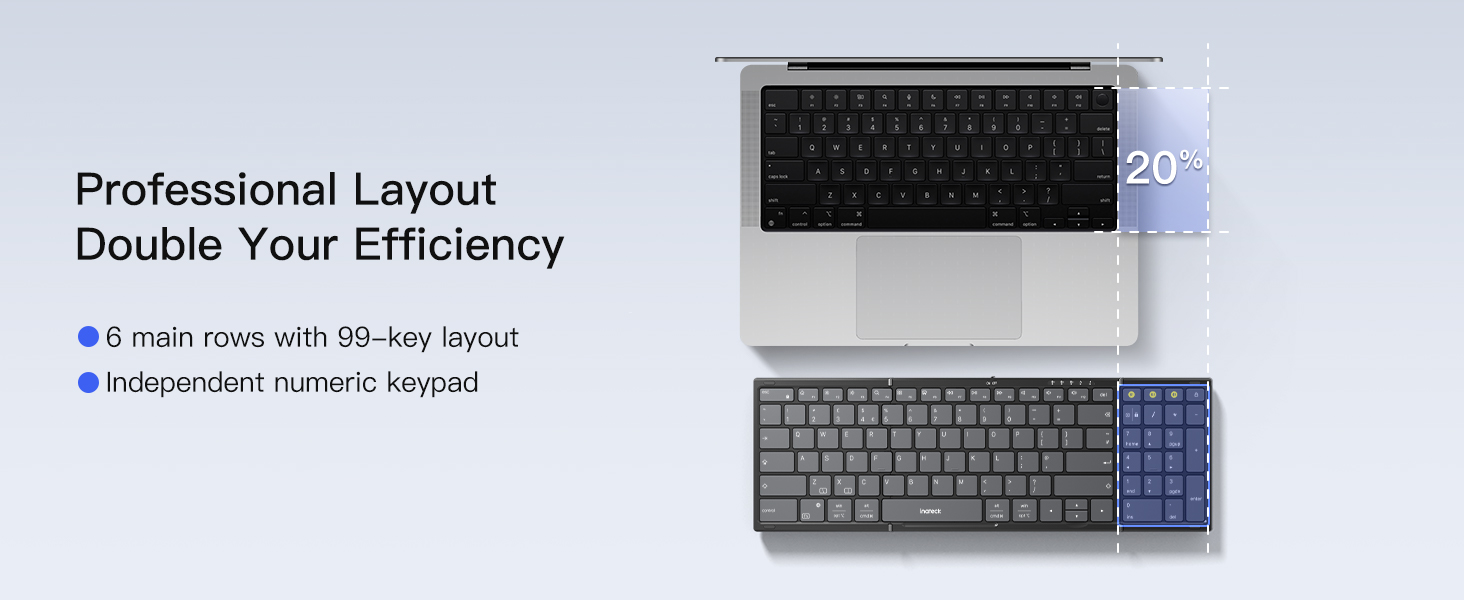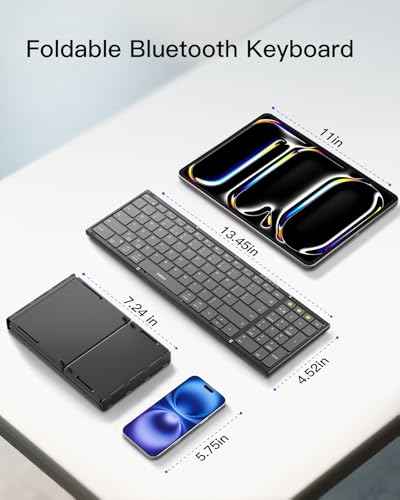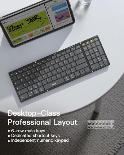 - Full-Size Foldable Keyboard: Featuring a full-featured PC-level layout, the keyboard has six rows of main key areas to meet different key combination requirements. The full-size keyboard has a total of 99 keys and is equipped with a separate numeric keypad, covering various scenarios such as data entry and document processing. Numeric input does not require switching, making office work more efficient