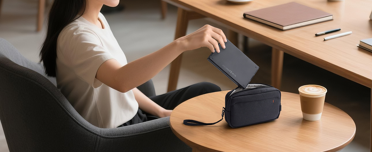 - The travel bag, specially designed for the Inateck Nomad N0158 Foldable Keyboard and Mouse, protects the set and is easy to carry.