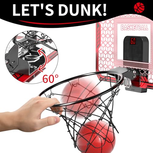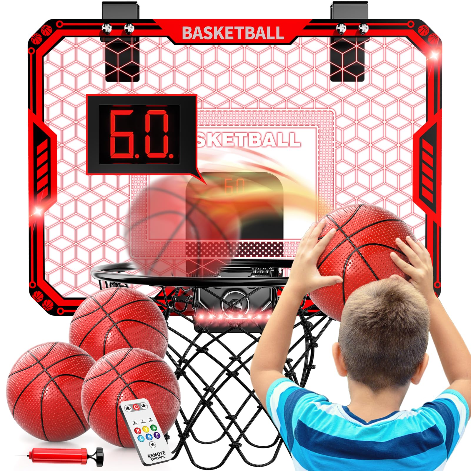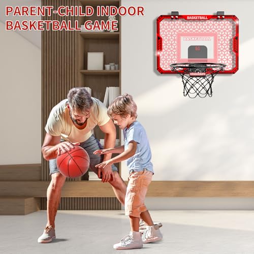 Indoor Basketball Hoop for Kids,Mini Basketball Hoop with 4 Balls, Hoop with Electronic Scoreboard, Outdoor, Red, Sports Toys Gifts for 5-12 Year Old Boys