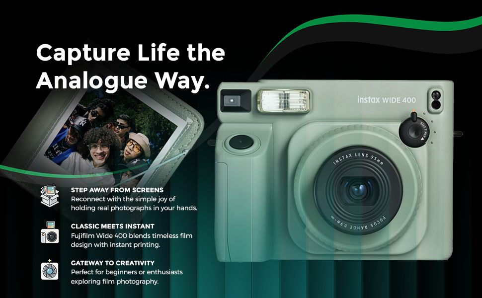 Fujifilm wide format lets your instant print camera create bold shots with Fujifilm 400 film for vibrant everyday photography