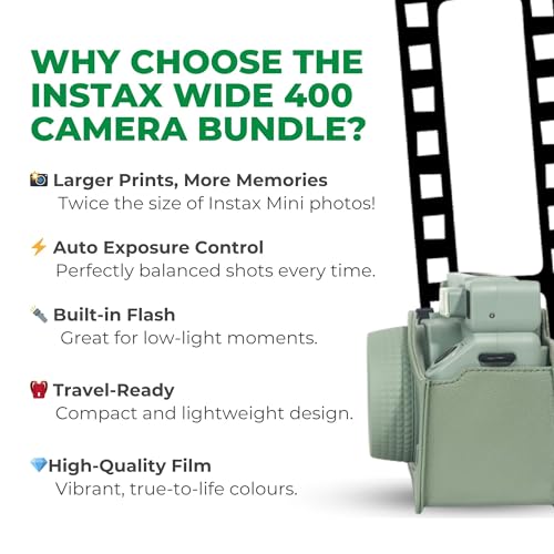 Instant Camera Bundle with Fujifilm Wide 400 Camera, Case