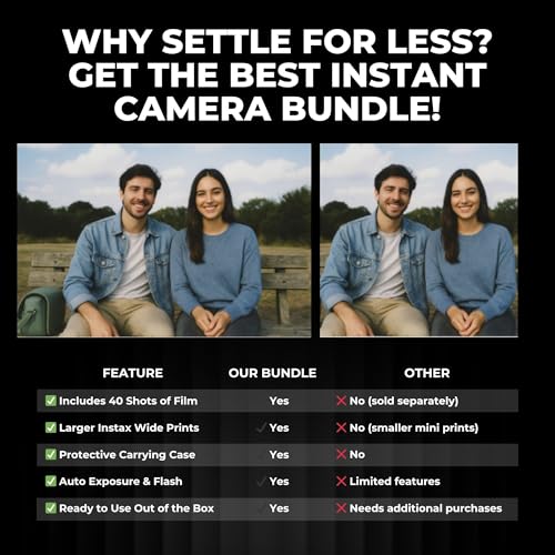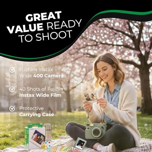 - Complete Instant Print Camera Bundle – Includes fujifilm wide 400 film (40 shots), protective camera case, photo album, picture frame & filter lens – everything needed for instant film photography adventures right out of the box