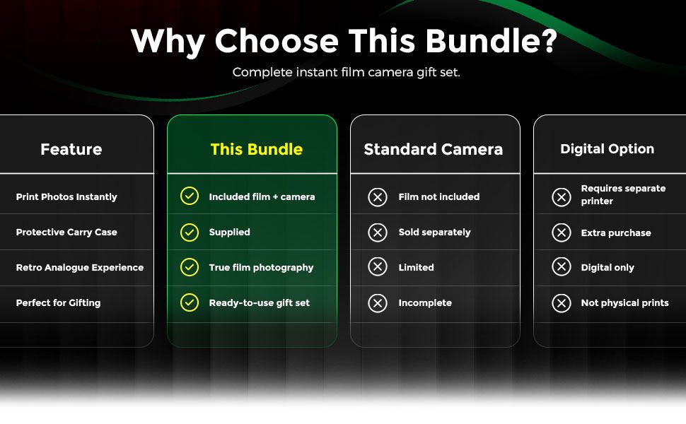 - Portable Photography Made Simple – Take this instant camera anywhere with included camera accessories and protective case. Transform every outing into memorable moments while keeping your film camera safe from bumps and scratches