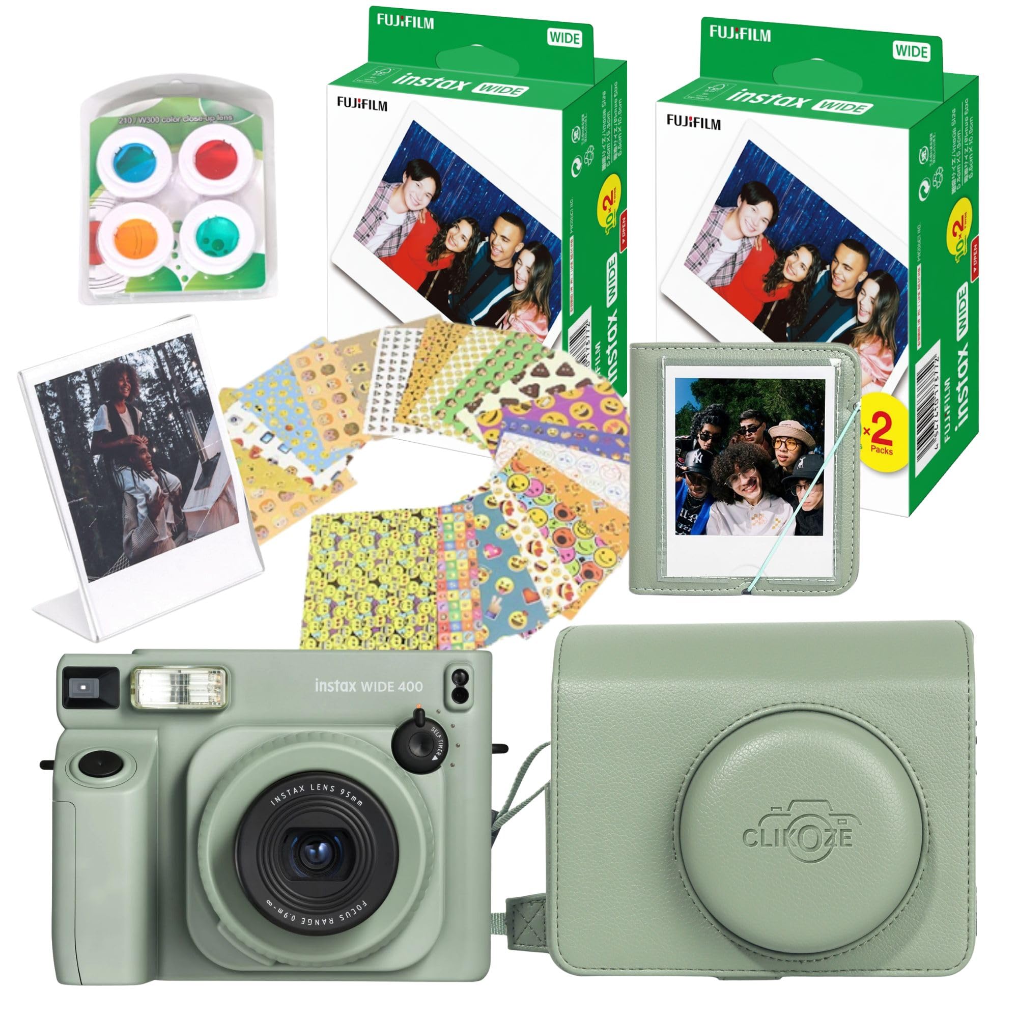 Instant Camera Bundle with Fujifilm Wide 400 Camera, Case, 40 Shot Film, Album, Filters, Frame and Stickers