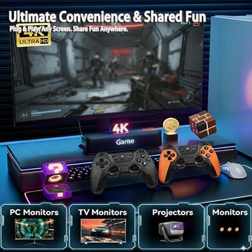 - Stunning 4K Ultra HD Output: Delivers sharp, smooth 4K visuals. Compatible with TVs, monitors, and projectors, upgrading retro gaming to modern-quality standards.