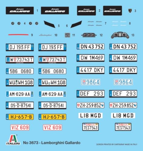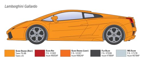 Plastic model to assemble. Colour assembly instructions (English language not guaranteed). Paint and liquid glue for plastic model making not included. For references on suggested colours please check profile pictures or visit Italeri. Mounted model length 7 inches. The Lamborghini Gallardo was one of the most iconic and most commercially successful cars produced by the automaker of Sant’Agata Bolognese. Introduced on the market in 2003, it is certainly a reference point of the design and style of sports cars of the period made by Italdesign di Giorgetto Giugiaro. Equipped with a 5.0-litre V10 engine capable of delivering over 500 hp, subsequently enhanced with an increase in displacement to 520 hp, the Lamborghini Gallardo guaranteed performance at the top of the segment. Top performance for top speed, over 300 km/h, acceleration and road hold. It was produced in over 14,000 copies, a significant number for the type of car, and was declined in numerous versions and customizations. For collectors over the age of 14
