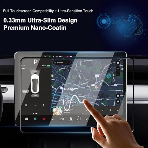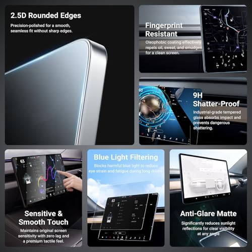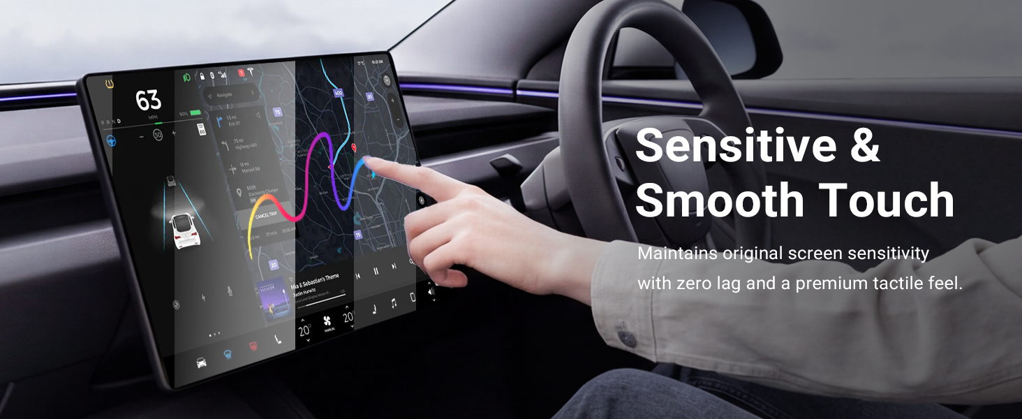 - 【 Anti-Fingerprint – Always Clean & Smudge-Free】 Hate wiping off greasy fingerprints? The oleophobic coating repels oils, smudges, and fingerprints, keeping your Tesla screen clean, sharp, and easy to read with just a quick wipe.