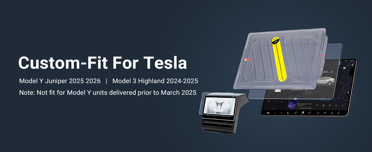- 【 Designed for Tesla】 iXTRA tempered glass screen protector is precisely engineered for Tesla Model 3 Highland (2024–2026) and New Model Y Juniper (2025–2026). Each pack includes 1 front (15.4" / 39.1 cm) and 1 rear (8" / 20.3 cm) center console screen protector that perfectly matches your display’s exact curves. The ultra-precise cut ensures a seamless fit with no edge gaps, preventing dust build-up and lifting while blending flawlessly with your Tesla interior.