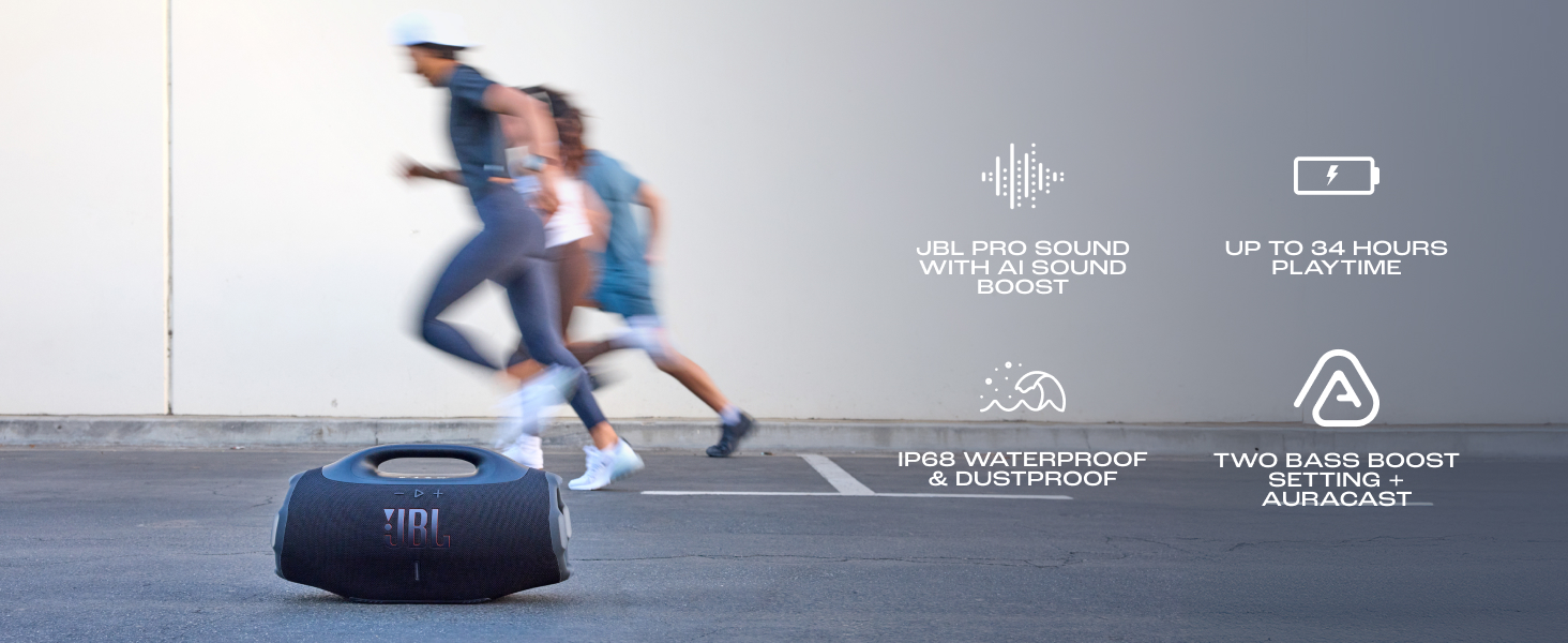 Unbeatable Sound All Day Long: The JBL Boombox 4 Bluetooth speaker delivers massive JBL Pro Sound with two Bass Boost modes in a portable, waterproof and dustproof design built for all-day listening anywhere