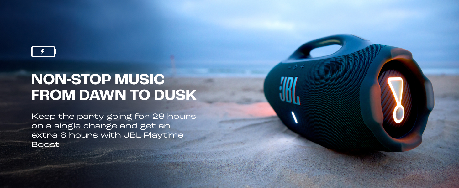 Keep the Beat Going: Enjoy up to 28 hours of wireless Bluetooth playtime on a single charge, with an extra 6 hours from JBL Playtime Boost to keep the music going even longer