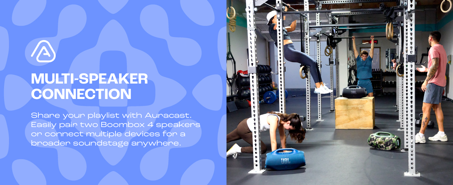Share the Vibe: Use Auracast to connect two Boombox 4 speakers for a wider soundstage or link multiple Auracast-enabled speakers to share music, while selecting Deep Bass or Punchy Bass mode to suit your mood