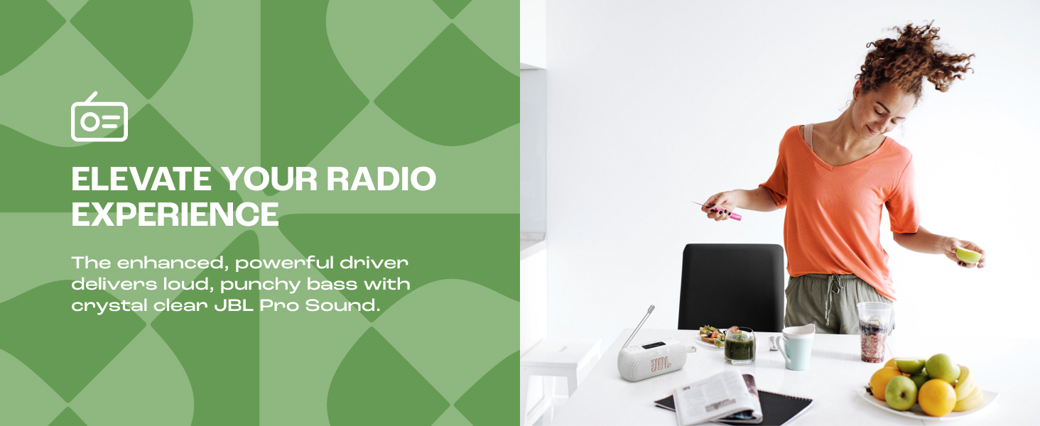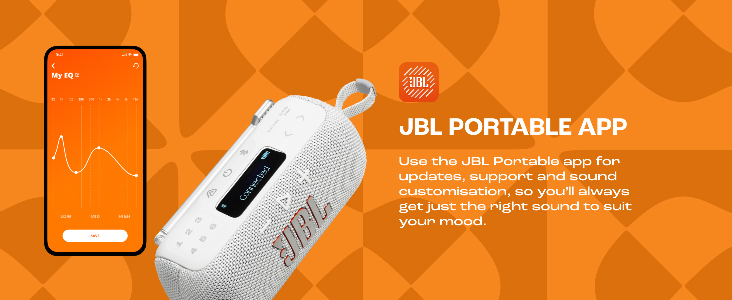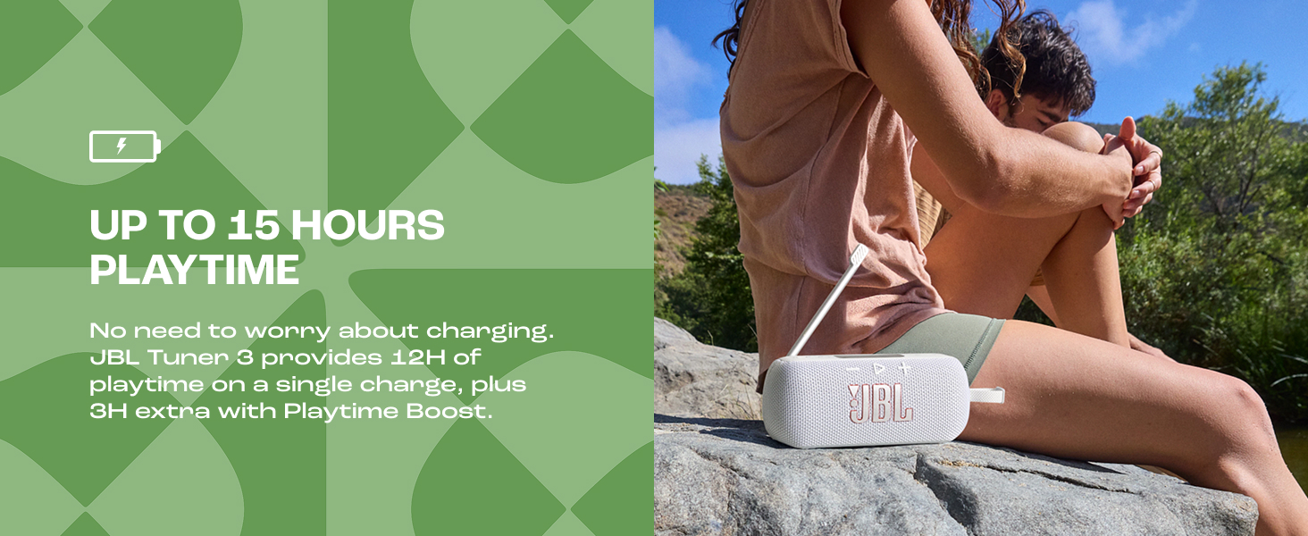Endless Tunes, Tailored to You: This battery-operated radio offers up to 12 hours of playtime, plus 3 extra hours with Playtime Boost, and lets you customise your sound for any mood using the JBL Portable app