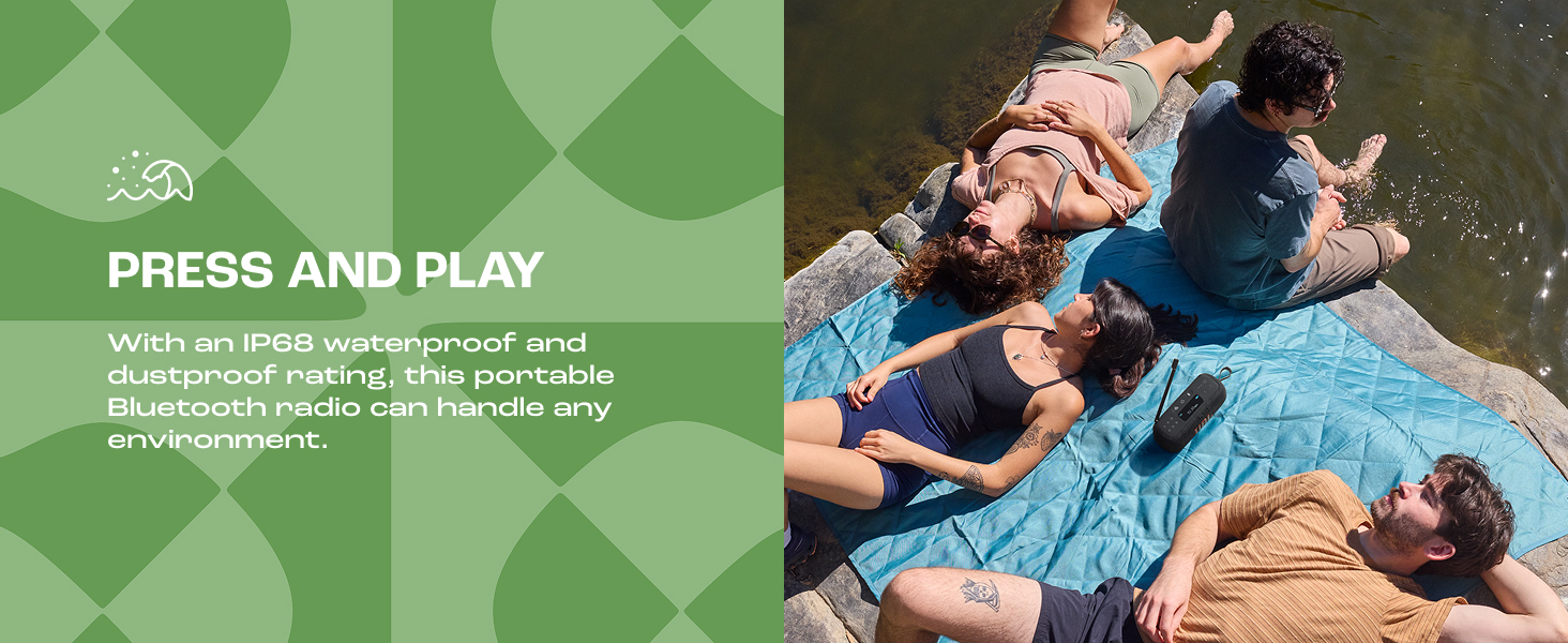 Waterproof & Dustproof: The JBL Tuner 3 digital radio has a sturdy loop for easy carrying and boasts an IP68 rating, making it suitable for any environment, from poolside parties to seaside picnics