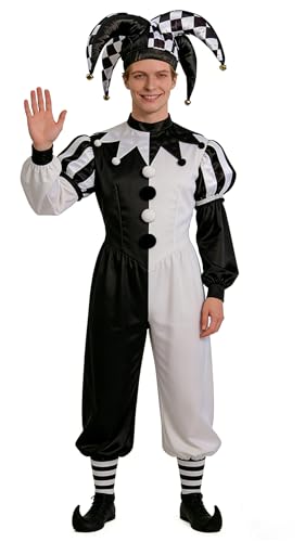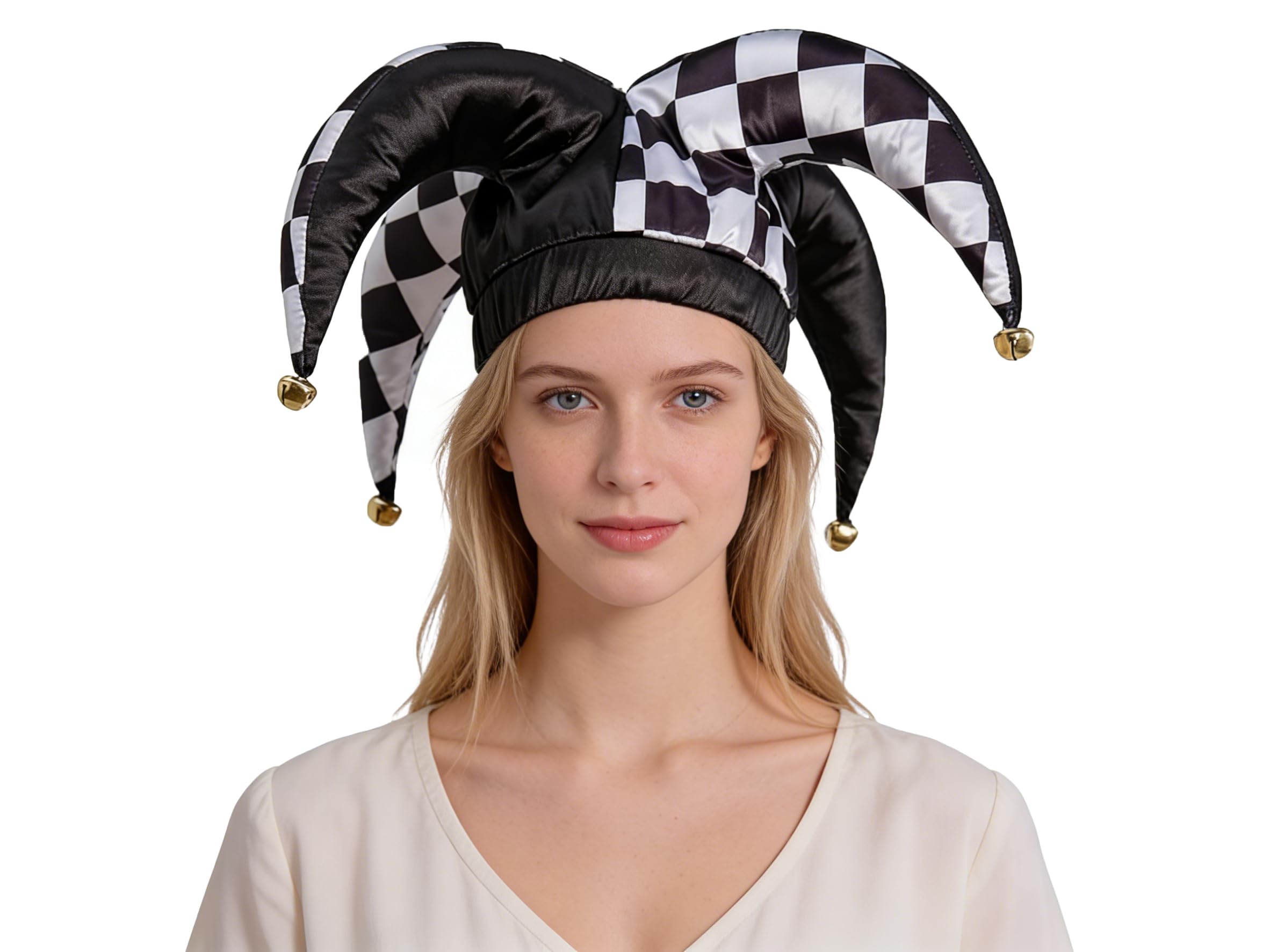 Step into the spotlight with this classic Red and Black Jester Hat, the perfect accessory to complete your costume ensemble. Featuring the traditional multi-pointed design with six vibrant extensions adorned with small golden bells that jingle with every movement, this hat brings medieval court jesters and carnival festivities to life. The striking colour combination of rich red and deep black creates a bold statement piece that’s ideal for Halloween parties, Christmas celebrations, Carnival festivities, or Mardi Gras events. Crafted with comfortable fabric that sits snugly on your head, this versatile costume headwear is suitable for adults of all sizes. Whether you’re planning a theatrical performance, attending a fancy dress party, or simply adding a touch of whimsy to your cosplay collection, this Jester Hat delivers authentic flair that will make you the life of any celebration. The lightweight design ensures you can wear it comfortably throughout your event while the bells add that extra touch of medieval authenticity.