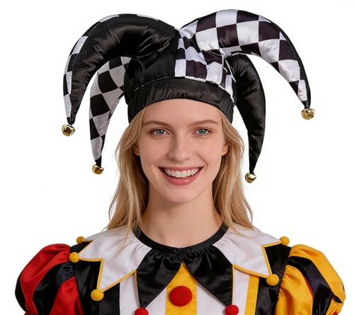 Jester Hat Clown Joker Costume Accessory with Bells for Halloween Christmas Carnival Mardi Gras Cosplay