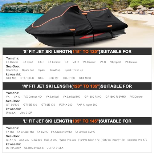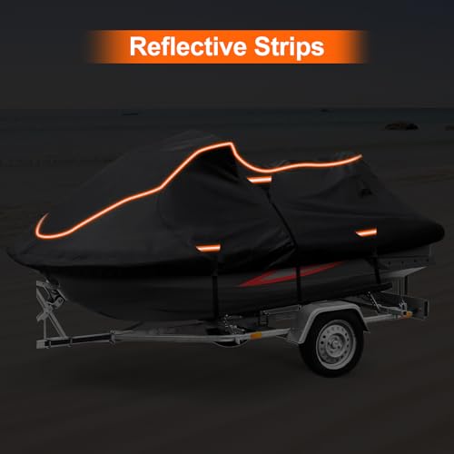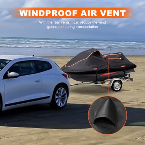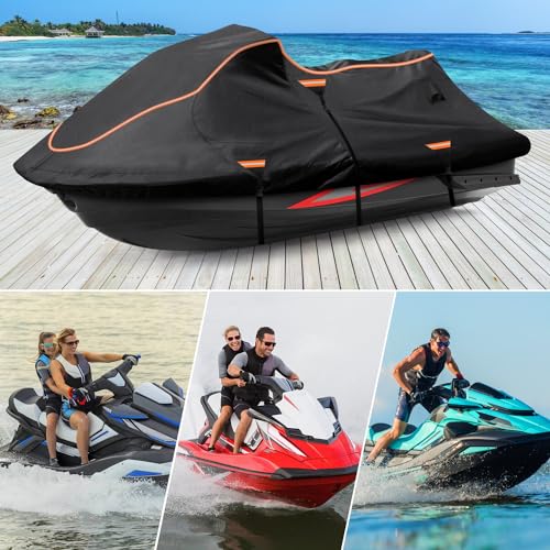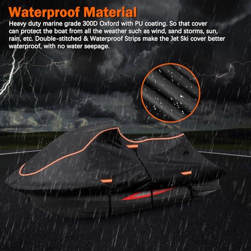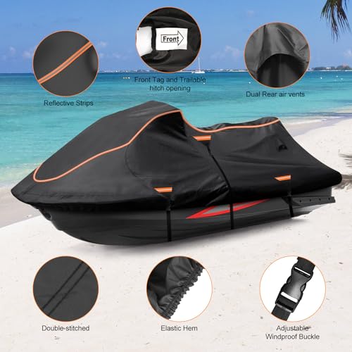 Jet Ski Cover Fits from 115″-120″ 1 or 3 Seater, 300D Duty Oxford PU Waterproof UV Proof Trailerable Jet Ski Covers, Universal Fit Compatible with Yamaha SeaDoo and Models
