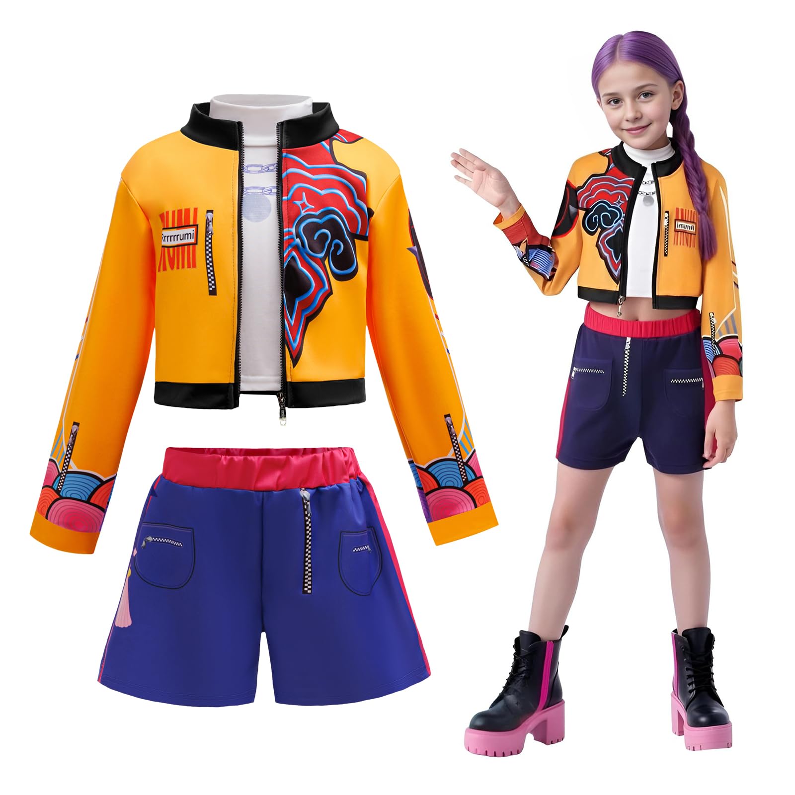 JIASHA K-p0p Dem0n Hun-ters Costume for Kids, Costume Girls Costplay Party Outfits Carnival Outfit Singer Uniform Full Set for Kids