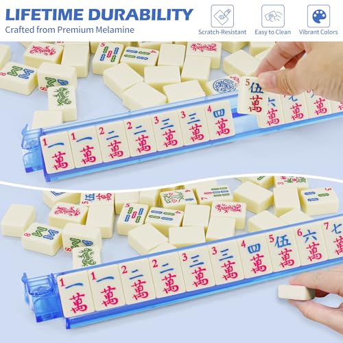 - Unmatched Durability & Feel:Crafted with premium scratch-resistant melamine tiles, this American Mahjong Set is built to outlast decades of family game nights—unlike cheap plastic sets that scratch, fade, or crack after just a few uses. Our tiles retain their vibrant colors and smooth, comfortable grip even after repeated play, making them ideal for both casual get-togethers and serious mahjong enthusiasts